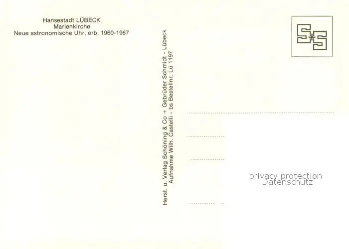 Luebeck Neue astronomische Uhr in der Marienkirche Luebeck postalisch nicht gelaufen nach 1965 Erhaltung siehe scans [FriedD77] Frierer