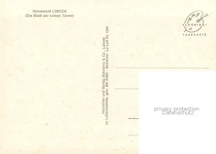 Luebeck Panorama Stadt der sieben Tuerme Luebeck postalisch nicht gelaufen nach 1965 Fliegeraufnahme Erhaltung siehe scans [FriedD77] Fliegeraufnahme Frierer