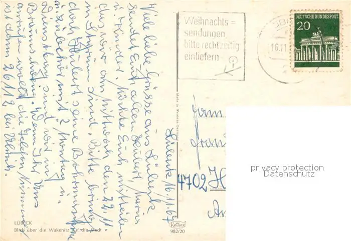 Luebeck Parkanlage Stadtpanorama Luebeck postalisch gelaufen 1967 Erhaltung siehe scans [KathaD81] Kathoren