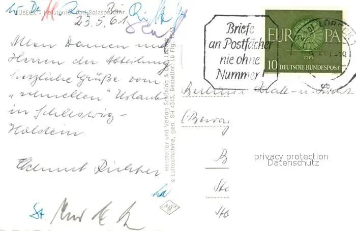 Luebeck Salzspeicher Luebeck postalisch gelaufen 1961 Erhaltung siehe scans [KathaD81] Kathoren
