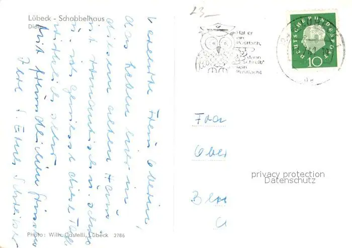 Luebeck Schabbelhaus Diele Luebeck postalisch gelaufen 1961 Erhaltung siehe scans [WerneD78] WernPID7