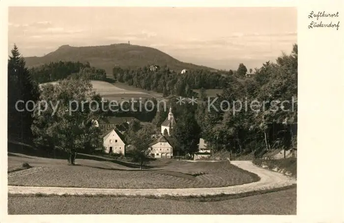 Lueckendorf Ortsansicht mit Kirche Luftkurort Hochwald Zittauer Gebirge Silesia Karte Nr. 3223 Lueckendorf postalisch nicht gelaufen nach 1965 Erhaltung siehe scans [FriedD77] Frierer