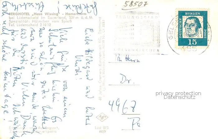 Luedenscheid Berghotel Haus Wissing Homertturm Luedenscheid postalisch gelaufen 1965 Fliegeraufnahme Erhaltung siehe scans [FriedD77] Fliegeraufnahme Frierer