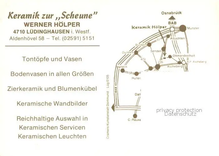 Luedinghausen Keramik zur Scheune Luedinghausen postalisch nicht gelaufen nach 1965 Werbekarte (keine Postkarte) Erhaltung siehe scans [WerneD78] Werbekarte (keine Postkarte) WernPID7
