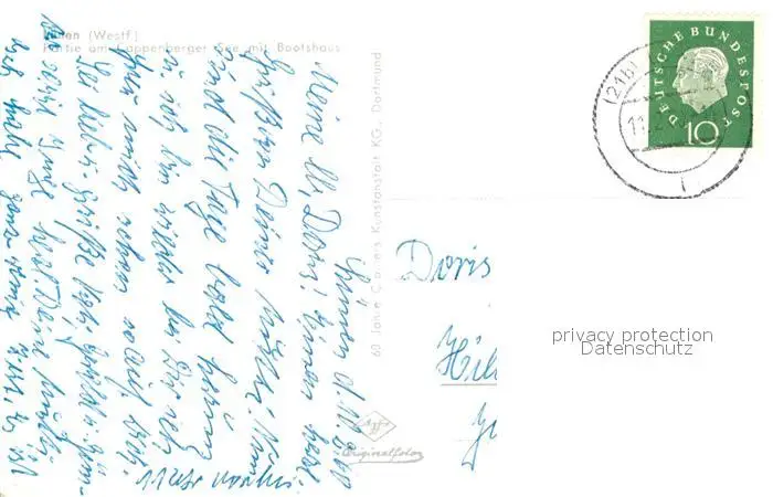 Luenen Partie am Cappenberger See mit Bootshaus Luenen postalisch gelaufen 1960 Erhaltung siehe scans [WerneD78] WernPID7