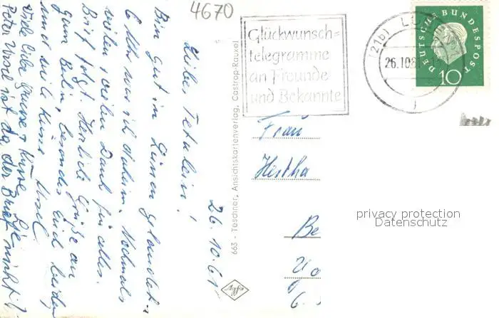 Luenen Stadtbad Astoria Lichtspiele Alter Markt Lange Strasse Stadthaus Luenen postalisch gelaufen 1961 Erhaltung siehe scans [FriedD77] Frierer