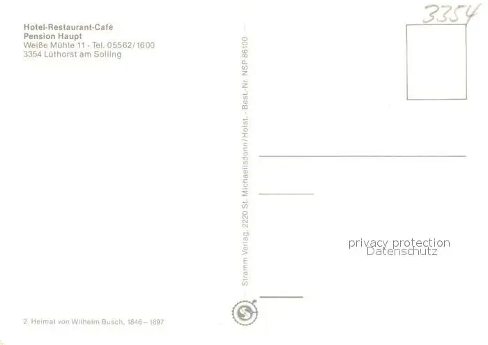 Luethorst Hotel Restaurant Pension Wilhelm Busch Gedenkstein Kirche Bankgebaeude Luethorst postalisch nicht gelaufen nach 1965 Erhaltung siehe scans [FriedD77] Frierer