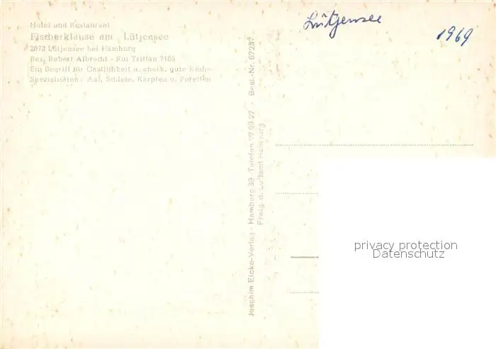 Luetjensee Kategorie Alte Ansichtskarten Postkarten bx62026 Luetjensee Fliegeraufnahme Hotel Restaurant Fischerklause Luetjensee postalisch nicht gelaufen 1969 Erhaltung siehe scans [KathaD81]