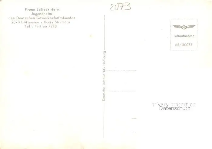 Luetjensee Franz Spliedt Heim Jugendheim des Dt Gewerkschaftsbundes Fliegeraufnahme Luetjensee postalisch nicht gelaufen nach 1965 Erhaltung siehe scans [WerneD78] WernPID7