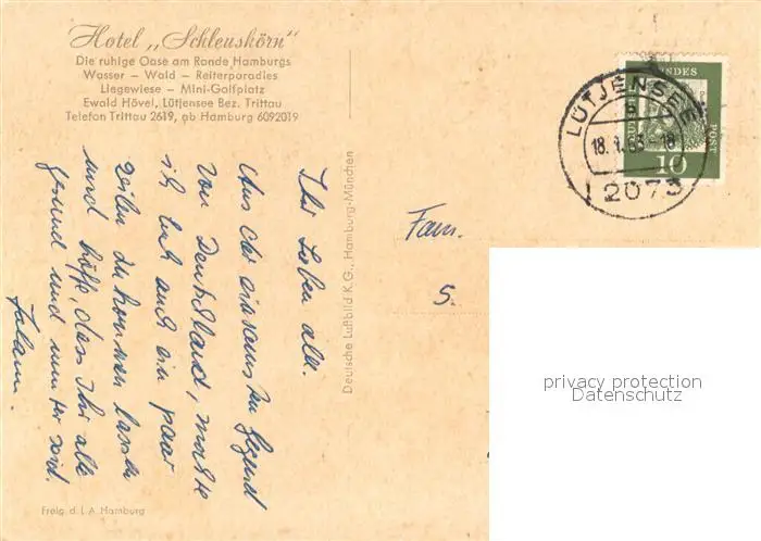 Luetjensee Hotel Schleushoern Fliegeraufnahme Luetjensee postalisch gelaufen 1963 Erhaltung siehe scans [WerneD78] WernPID7