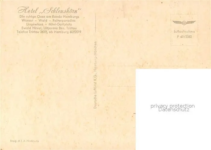 Luetjensee Hotel Schleushoern Fliegeraufnahme Luetjensee postalisch nicht gelaufen nach 1965 Erhaltung siehe scans [WerneD78] WernPID7