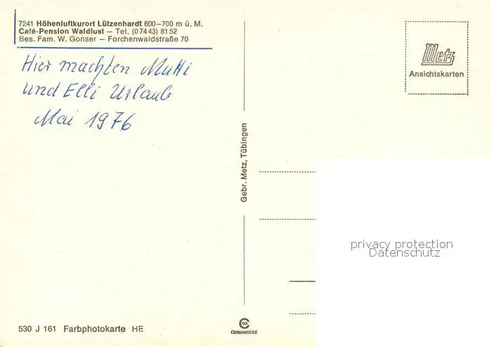 Luetzenhardt Kategorie Alte Ansichtskarten Postkarten bx62992 Luetzenhardt Cafe Pension Waldlust Luetzenhardt postalisch nicht gelaufen 1976 Erhaltung siehe scans [KathaD81]