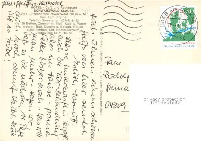 Luetzenhardt Hotel Cafe Restaurant Schwarzwald Klause Luetzenhardt postalisch gelaufen 1996 Erhaltung siehe scans [WerneD78] WernPID7