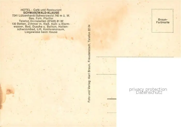Luetzenhardt Hotel Cafe Restaurant Schwarzwald Klause Luetzenhardt postalisch nicht gelaufen nach 1965 Erhaltung siehe scans [WerneD78] WernPID7