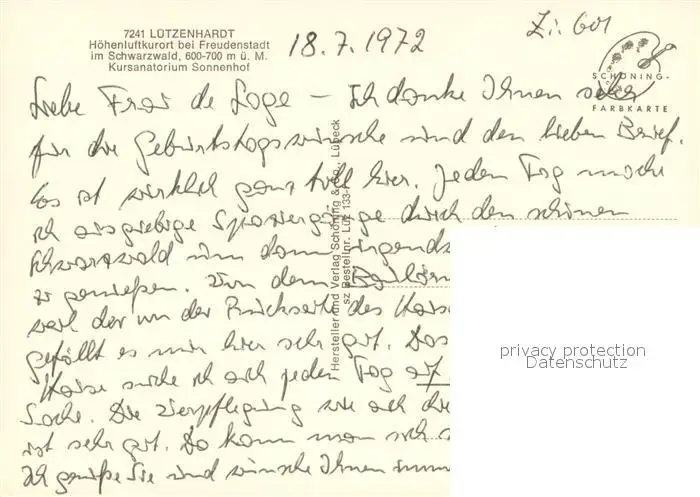Luetzenhardt Kursanatorium Sonnenhof Luetzenhardt postalisch nicht gelaufen 1972 Erhaltung siehe scans [WerneD78] WernPID7