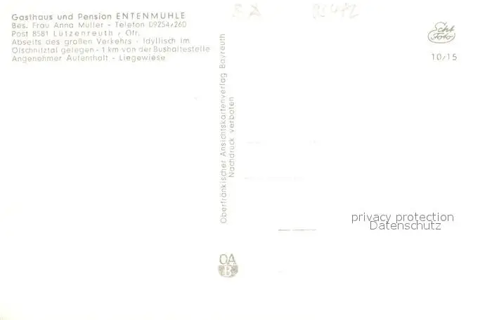 Luetzenreuth Gasthaus Pension Entenmuehle oelschnitztal Luetzenreuth postalisch nicht gelaufen nach 1965 Erhaltung siehe scans [FriedD77] Frierer
