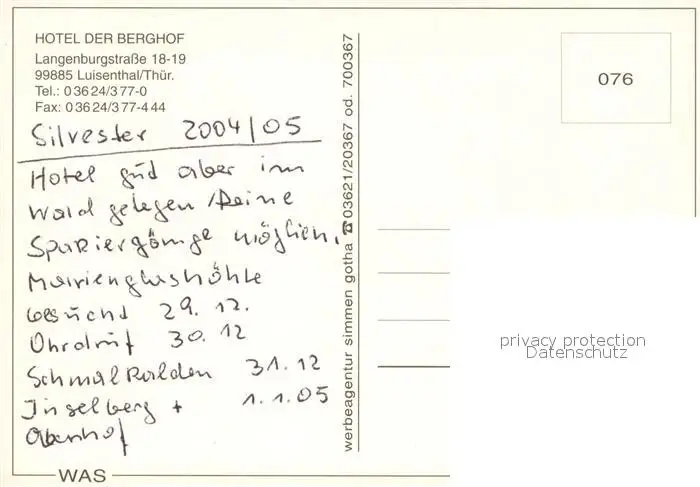 Luisenthal Hotel der Berghof Luisenthal postalisch nicht gelaufen nach 1965 Erhaltung siehe scans [LiesaD40] LiesID40