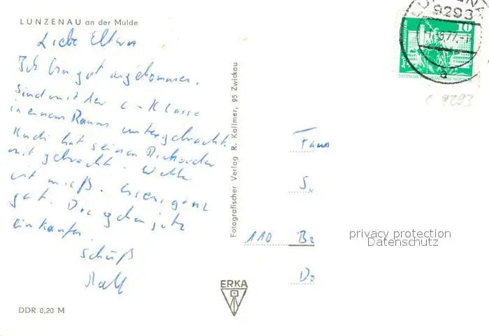 Lunzenau Kirche Stadtansicht Bruecke Mulde Lunzenau postalisch gelaufen 1977 Erhaltung siehe scans [KathaD81] Kathoren