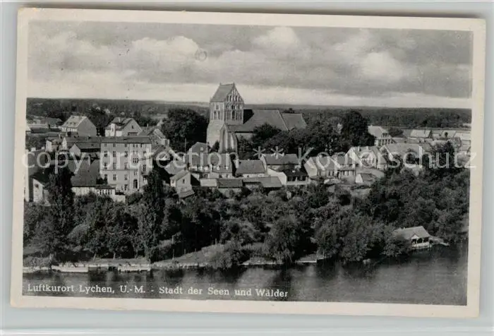 Lychen Fliegeraufnahme Seepartie Kirche Lychen postalisch gelaufen 1954 Erhaltung siehe scans [LiesaD40] LiesID40