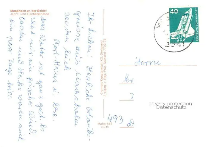 Maasholm Jacht- und Fischereihafen an der Schlei Fliegeraufnahme Maasholm postalisch gelaufen 1978 Erhaltung siehe scans [FriedD77] Frierer