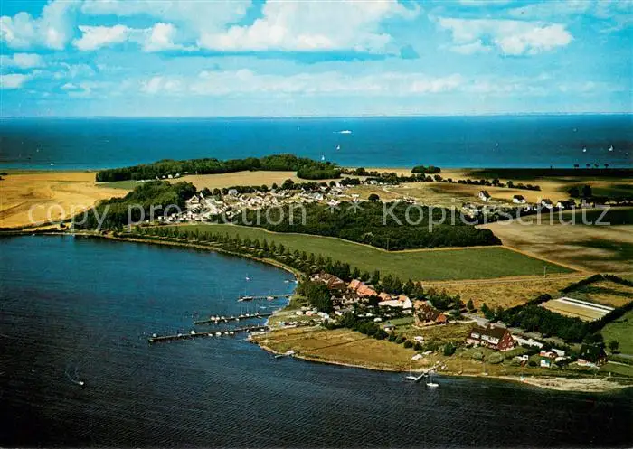 Maasholm Panorama Blick ueber die Schlei Maasholm Bad und Ostsee Maasholm postalisch nicht gelaufen 1988 Fliegeraufnahme Erhaltung siehe scans [FriedD77] Fliegeraufnahme Frierer