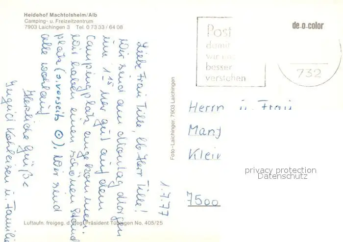 Machtolsheim Camping- und Freizeitzentrum Heidehof Fliegeraufnahme Machtolsheim postalisch gelaufen 1977 Erhaltung siehe scans [FriedD77] Frierer