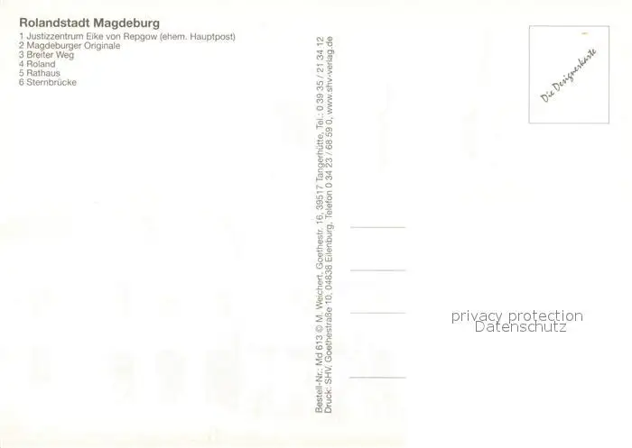Magdeburg Justizgebaeude Magdeburger Originale Plastiken Breiter Weg Rolandstatue Rathaus Sternbruecke Magdeburg postalisch nicht gelaufen nach 1965 Erhaltung siehe scans [FriedD77] Frierer