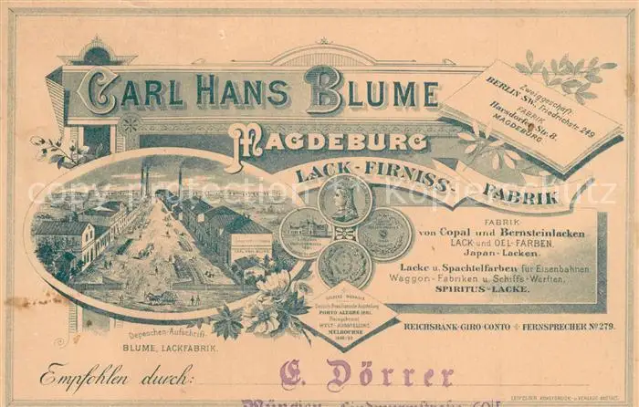 Magdeburg Kategorie Alte Ansichtskarten Postkarten bx56577 Magdeburg Lack Firniss Fabrik Hans Blume Magdeburg postalisch nicht gelaufen Keine Postkarte (siehe scan) Erhaltung siehe scans [NatalD47]
