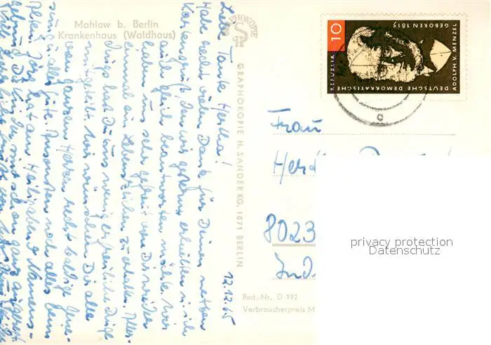 Mahlow Krankenhaus Waldhaus Mahlow postalisch gelaufen 1965 Erhaltung siehe scans [FriedD77] Frierer