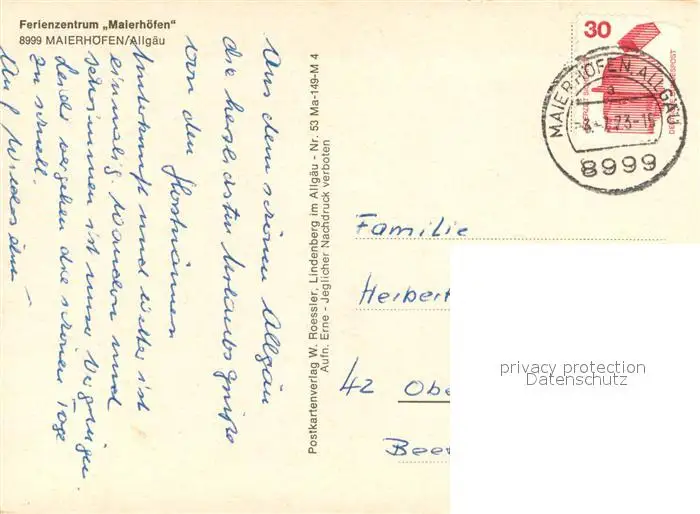 Maierhoefen_Allgaeu Ferienzentrum Kegelbahn Hallenbad Maierhoefen Allgaeu postalisch gelaufen 1973 Erhaltung siehe scans [WerneD78] WernPID7