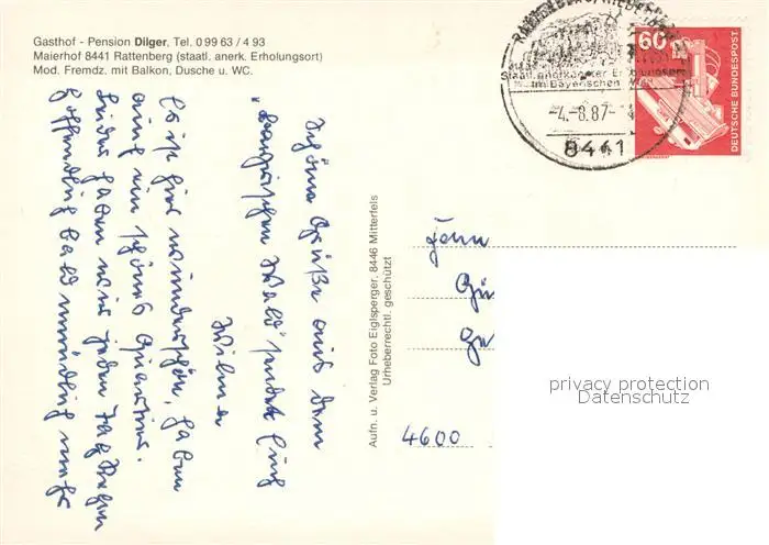 Maierhof_Rattenberg Gasthof Pension Dilger Restaurant Bayerischer Wald Maierhof Rattenberg postalisch gelaufen 1987 Erhaltung siehe scans [FriedD77] Frierer