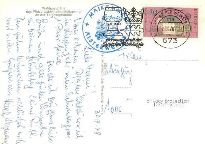 Maikammer Totenkopf-Haus Waldgaststaette des Pfaelzerwaldvereins an der Totenkopfstrasse Maikammer postalisch gelaufen 1978 Erhaltung siehe scans [FriedD77] Frierer