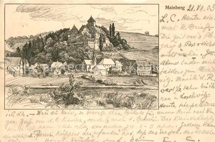 Mainberg Kategorie Alte Ansichtskarten Postkarten bx58851 Mainberg Schloss Zeichnung Mainberg postalisch gelaufen 1903 Erhaltung siehe scans [WerneD78]