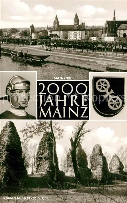 AK / Ansichtskarte Mainz_Rhein 2000 Jahre Jubilaeum Rheinufer Blick zum Dom Roemer Roemersteine 81 96 n. Chr. Mainz Rhein