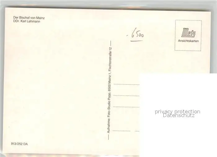 Mainz_Rhein Bischof DDr. Karl Lehmann Mainz Rhein postalisch nicht gelaufen 1921-1965 Erhaltung siehe scans [FriedD77] Frierer