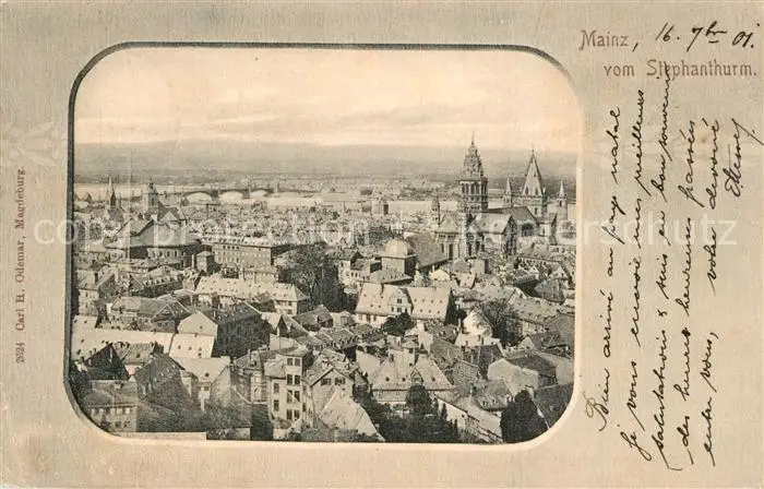 Mainz_Rhein Blick vom Stephanturm Panorama Mainz Rhein postalisch gelaufen 1907 Erhaltung siehe scans [KathaD81] Kathoren