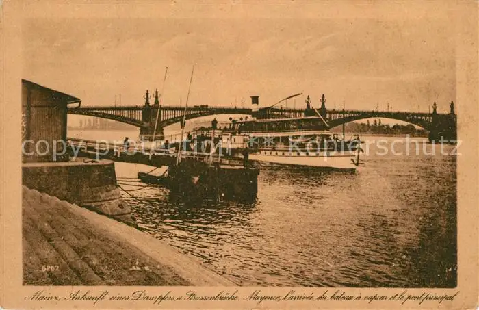 Mainz_Rhein Dampfer Anleger Strassenbruecke Mainz Rhein postalisch nicht gelaufen bis 1920 Erhaltung siehe scans [FriedD77] Frierer