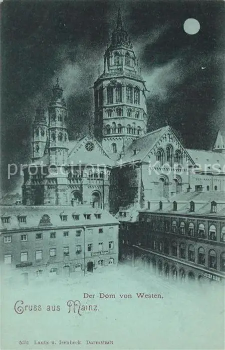 Mainz_Rhein Der Dom von Westen im Mondschein Kuenstlerkarte Mainz Rhein postalisch nicht gelaufen bis 1920 Erhaltung siehe scans [FriedD77] Frierer