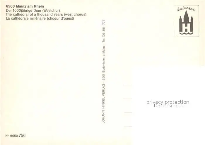 Mainz_Rhein Dom Fontaine Mainz Rhein postalisch nicht gelaufen 1975 Erhaltung siehe scans [KathaD81] Kathoren