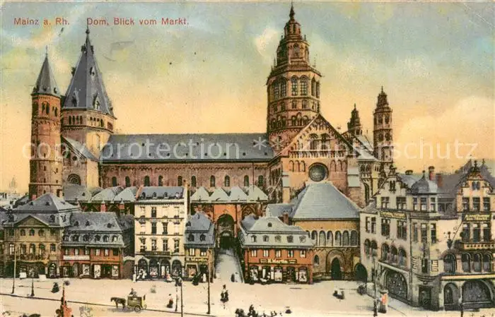 Mainz_Rhein Dom Marktblick Mainz Rhein postalisch gelaufen 1910 Erhaltung siehe scans [WerneD78] WernPID7