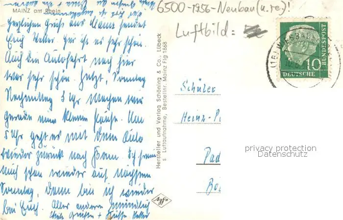Mainz_Rhein Fliegeraufnahme Mainz Rhein postalisch gelaufen 1956 Erhaltung siehe scans [WerneD78] WernPID7