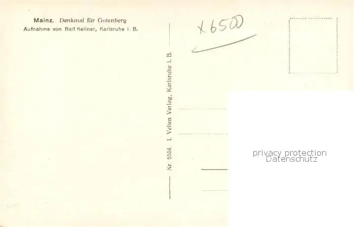 Mainz_Rhein Gutenberg Denkmal Statue Mainz Rhein postalisch nicht gelaufen 1921-1965 Erhaltung siehe scans [FriedD77] Frierer