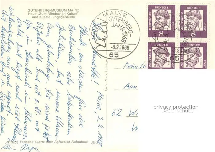 Mainz_Rhein Gutenberg Museum Haus Zum Roemischen Kaiser und Ausstellungsgebaeude Mainz Rhein postalisch gelaufen 1968 Erhaltung siehe scans [WerneD78] WernPID7