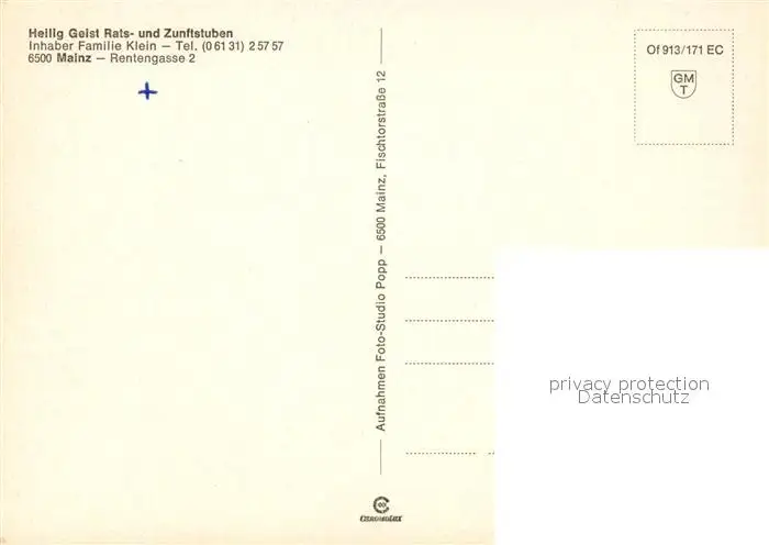 Mainz_Rhein Heilig Geist Restaurant Kellerstuben Mainz Rhein postalisch nicht gelaufen nach 1965 Erhaltung siehe scans [KathaD81] Kathoren