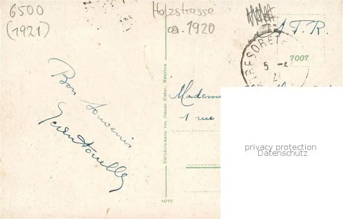 Mainz_Rhein Holzstrasse mit Holzturm Mainz Rhein postalisch gelaufen 1920 Erhaltung siehe scans [WerneD78] WernPID7