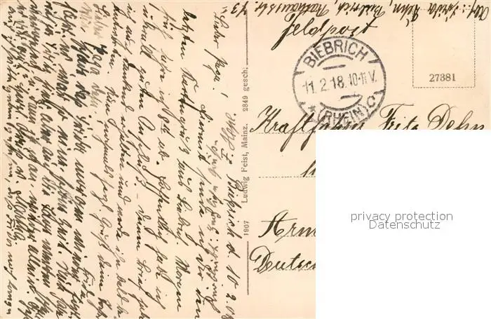 Mainz_Rhein Kaiserbruecke Mainz Rhein postalisch gelaufen 1918 Feldpost Erhaltung siehe scans [WerneD78] Feldpost WernPID7