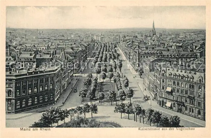 Mainz_Rhein Kaiserstrasse aus der Vogelschau Mainz Rhein postalisch nicht gelaufen 1918 Erhaltung siehe scans [FriedD77] Frierer
