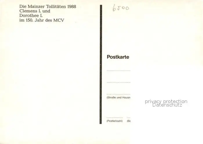 Mainz_Rhein Mainzer Tollitaeten Clemens I und Dorothee I im 150. Jahr des MCV Karneval Mainz Rhein postalisch nicht gelaufen nach 1965 Erhaltung siehe scans [FriedD77] Frierer