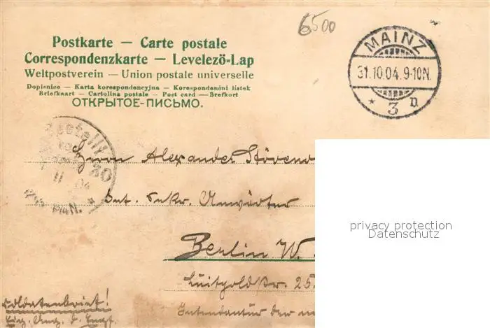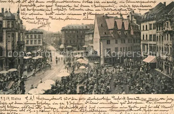 Mainz Rhein Kategorie Alte Ansichtskarten Postkarten bx44624 Mainz_Rhein Markt Mainz Rhein postalisch gelaufen 1904 Erhaltung siehe scans [NatalD47]