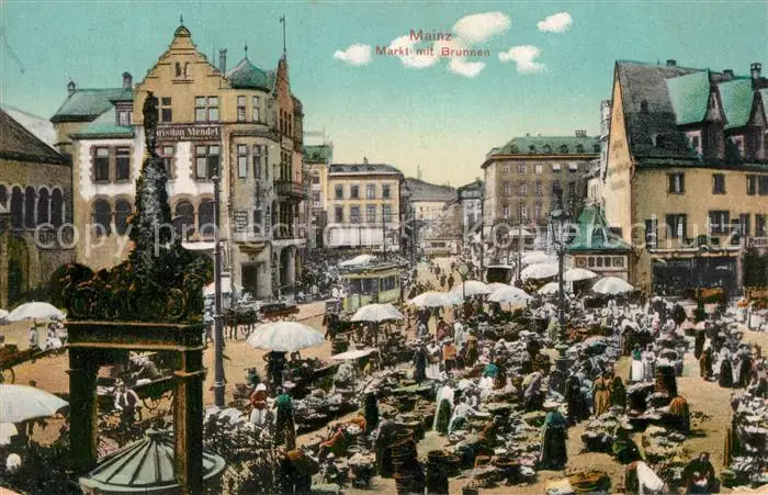Mainz_Rhein Markt mit Brunnen Mainz Rhein postalisch nicht gelaufen 1918 Erhaltung siehe scans [FriedD77] Frierer
